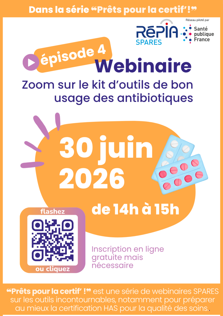 Dans le cadre de la série Prêts pour la certif’, l’équipe SPARES vous propose un quatrième webinaire consacré au kit d’outils de Bon Usage des Antibiotiques (BUA).